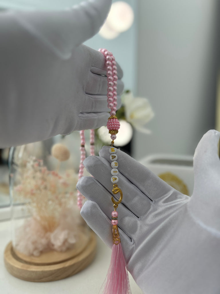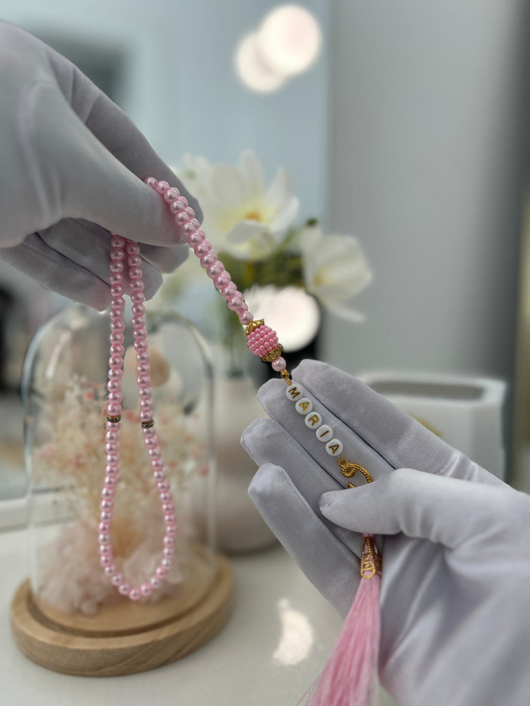 Each bead is strung with care and love, serving as a daily reminder of dhikr and spiritual mindfulness. With your name delicately integrated, this Tasbih becomes a powerful symbol of identity, faith, and remembrance of Allah (ο·»).